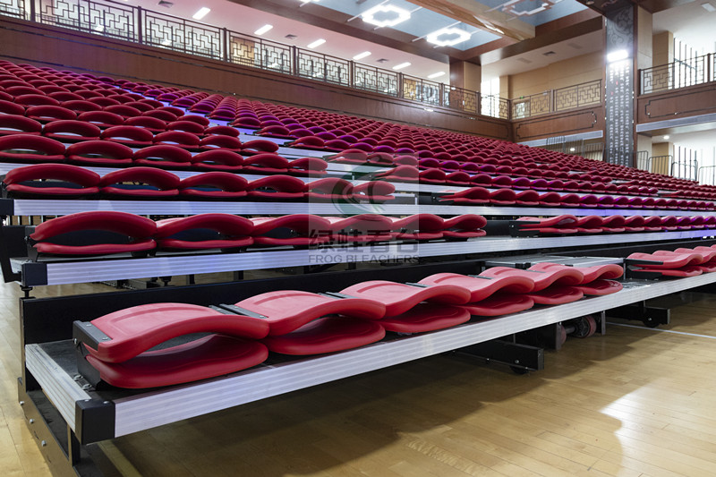 體育館看臺全部設計為伸縮看臺,二樓為7層,一樓為16層,全部采用電動伸縮。座椅采用翻板靠背吹塑椅,整體美觀大氣。