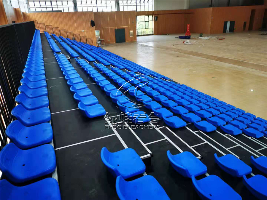 韶山學校高新校區建設項目位于韶山市高新區,地處滬昆高鐵韶山南站附近,東方紅路以西,紅旗路以南。辦學規模為75個班,其中初中45個班,高中30個班。規劃占地面積8.63萬平方米,總建筑面積6萬平方米,總投資為1.84億元。建筑內容包括教學樓、綜合樓、400米標準環形田徑場、足球場、籃球場等。綠蛙看臺則承接了學校體育館中的看臺座椅設施的搭建安裝,共安裝了低靠背電動十層伸縮看臺528位,踏步36級,可折疊的看臺座椅,最大程度利用了場館的空間環境,同時保證了師生觀眾的使用需求。明亮的藍色座椅,充滿運動的氣息,而電動的操控方式更方便省力、更安全。