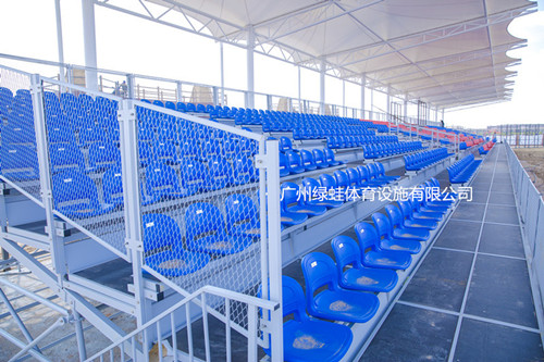 該看臺(tái)項(xiàng)目用于二連浩特旅游局舉辦的旅游節(jié)開幕式看臺(tái)。看臺(tái)采用可拆卸式結(jié)構(gòu),座椅采用高靠背中空吹塑椅,護(hù)欄采用綠蛙新型網(wǎng)狀護(hù)欄。二連浩特該季節(jié)藍(lán)天比較多,太陽照射紫外線強(qiáng),專門為看臺(tái)制作了張拉膜頂棚,安全、實(shí)用、美觀大方。