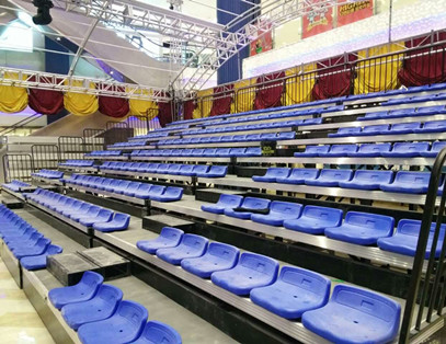 在與綠娃公司進行多輪溝通后,客戶方對綠蛙提供的方案非常滿意,兩側采用可移動簡易鋁制看臺,正對舞臺采用9層可移動式伸縮看臺。既滿足了客戶300人的座位需求,又實現了整體可移動的功能,堪稱完美。
