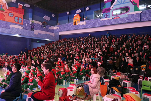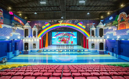 亞特蘭親子酒店的BIBI歡樂城堡里選用的中空吹塑低靠背電動伸縮看臺,看臺共有12層,最大限度的利用場地來滿足觀眾觀看節目需求。
