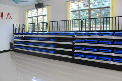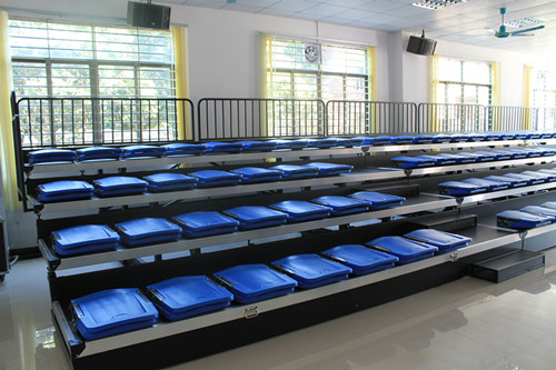考慮到提高會議的效果,拋棄原有的課桌式會議室桌椅,而改用帶有臺階式的伸縮看臺,以便開會時與會者與嘉賓交流方便。此外伸縮看臺節省空間也是設備采購時的一大考慮點。
