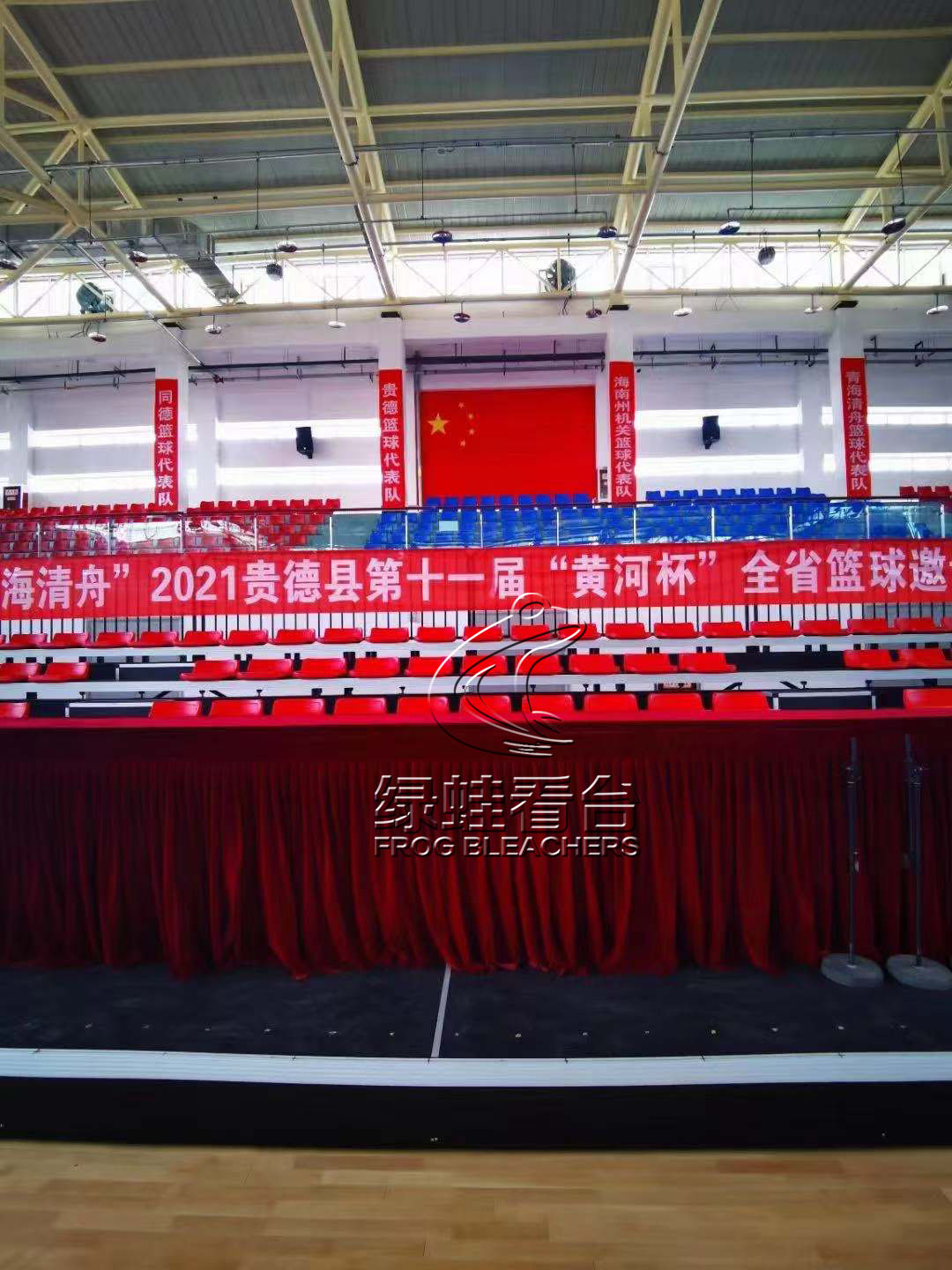 2021貴德縣第十一屆“黃河杯”全省籃球邀請賽落下帷幕。貴德縣人民政府對場館進行了改造和升級,體育場館的墻壁非常柔和、雜音不再出現、地面換成了漂亮的地板,一下子成為了“網紅球館”,并把2620多個座位安裝好,一夜之間貴德的籃球館已經高大上了,似乎能滿足于高水平的比賽了。電子屏等現代化的設備的運用讓貴德籃球進入了高科技“新時代”。專業的體育場館成就貴德縣籃球興盛之美,綠蛙看臺助力體育場館的建設,在場館安裝了舒適的看臺座椅,讓觀眾能全方位觀看精彩的比賽。