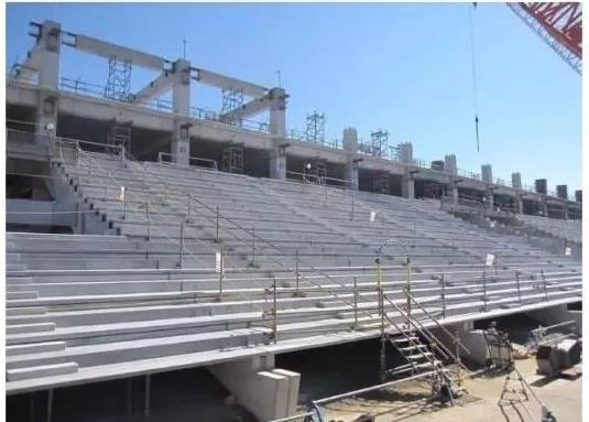 4.看臺(tái)后期的安裝速度也比較快,所有構(gòu)件都是在工廠制作后拉到現(xiàn)場(chǎng)組裝,不但能減少施工過(guò)程中的材料浪費(fèi),同時(shí)在工地上大大減少建筑垃圾,而且不受氣候影響.現(xiàn)場(chǎng)環(huán)境及人為因素造成質(zhì)量不可控.大幅降低工人勞動(dòng)強(qiáng)度和時(shí)間.方便有序交叉作業(yè),施工工期短,材料堆積如山,減少了材料堆積如山,不會(huì)給工地帶來(lái)粉塵.噪音,有利于環(huán)保;
