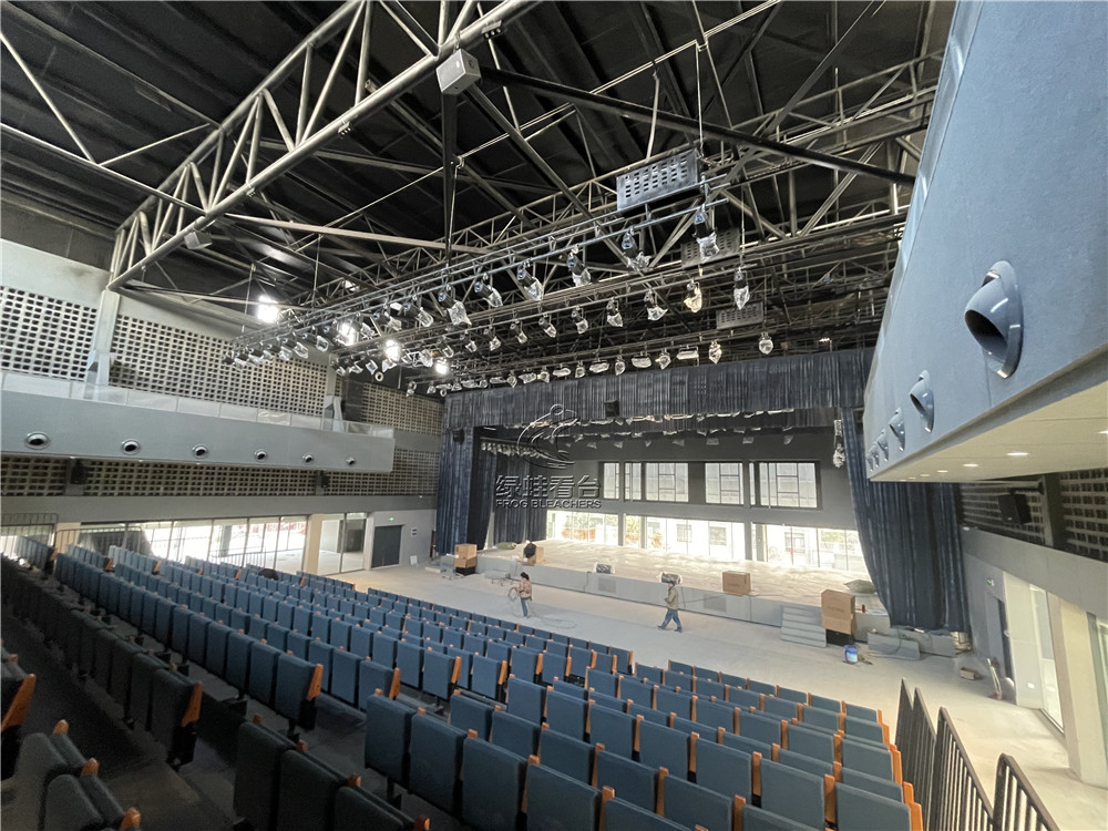 綠蛙看臺承接鄭州彩虹盒子藝術園的室內電動看臺座椅安裝調試項目