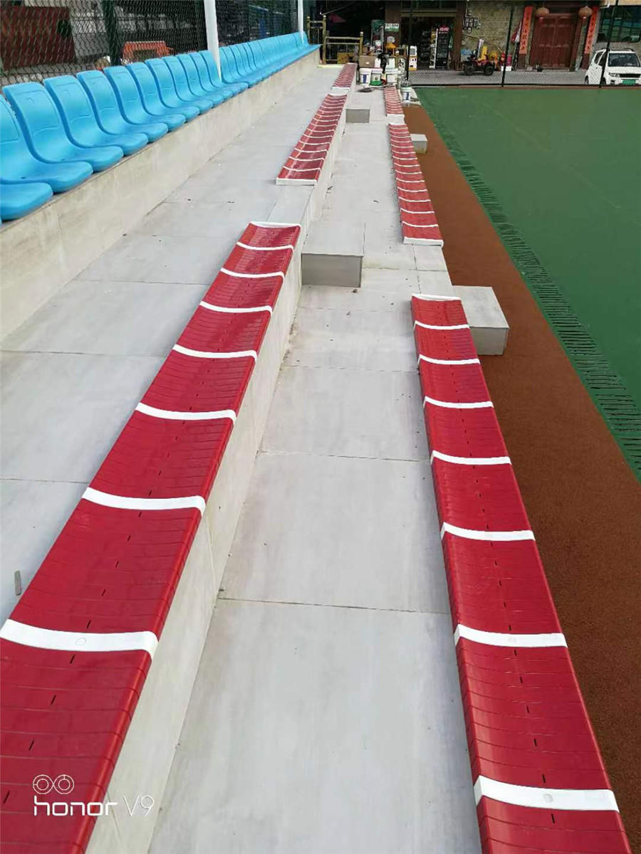 1)量出需要安裝座椅的區(qū)段的尺寸,一般是指固定看臺(tái)踏步通道與踏步通道之間的區(qū)間,然后對(duì)照設(shè)計(jì)圖紙,看需要多少個(gè)支架腿,分布好(FrogSport)。