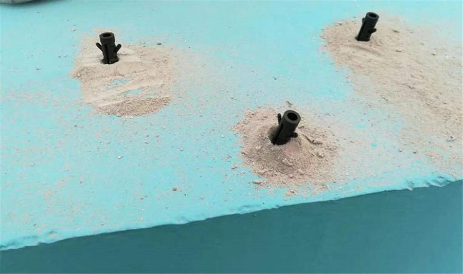4)再將座椅鎖定膨脹膠粒的孔位,然后將膨脹螺栓通過(guò)座椅的孔位打下去,直至與膨脹膠粒鎖死。