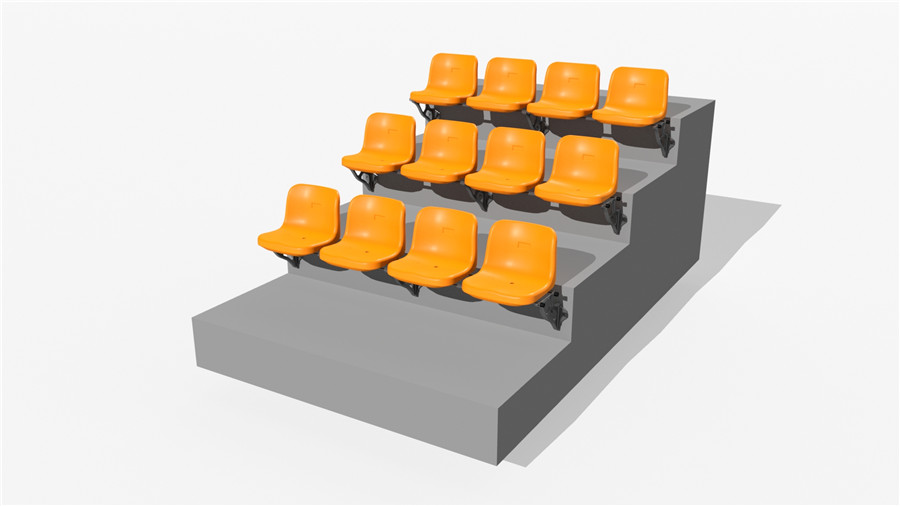 座椅采用站立式安裝方式的座椅,椅面距地面高度約為420mm左右,座椅支架選用優質壓鑄鋁支架連接鍍鋅圓管。壓鑄鋁支架采用靜電噴塑處理。支架采用M10×80的擊芯膨脹螺栓與看臺水泥壁面相連,每個膨脹螺栓可抗力100kg以上。鍍鋅圓管外徑不少于φ32mm,厚度不少于2mm。圓管兩端采用橡膠塞頭封口。緊固件、座椅連接件采用鍍鋅處理。