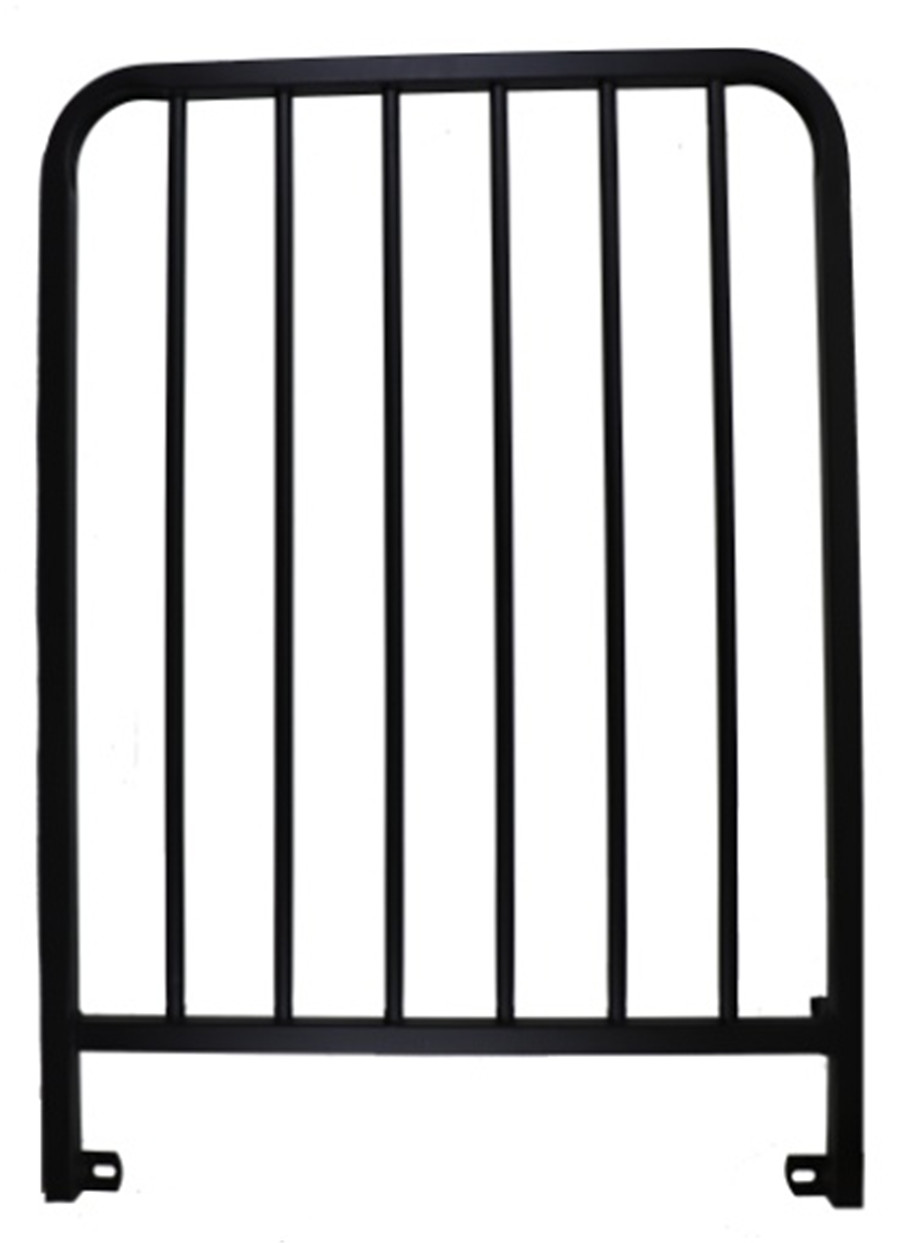 伸縮看臺床架側邊無切角部分安裝伸縮型安全應護欄在伸縮的過程中護欄無需插拔,護欄的表面采用噴塑處理。看臺的兩側每層床架側邊安裝有斜護欄,護欄的高度為1100MM,看臺的后側裝有垂直護欄,護欄的高度為1100MM,兩側的護欄和后側的護欄包圍起來兩者之間的空隙不超100MM,護欄采用鋼結構,表面外框采用30mm×30mm家具管彎曲成矩形框,護欄直角部分做圓弧處理。護欄框內嵌垂直部位采用焊接連接,內嵌垂直桿件采用直徑19mm家具管,桿件凈距也不應大于100mm。側護欄帶有斜角使得每一層的護欄處于不同立面上,在看臺伸展收縮時,不同層護欄不會互相碰撞,護欄無需插拔。側護欄與床架連接是由三個螺栓連接,保證護欄能夠實現橫向沖擊不出現斷裂,不出現變形。各護欄的水平靜載荷應能達到:加載60Kg/㎡30秒,卸載后無明顯永久變形。護欄的垂直靜載荷應能達到:加載100Kg/㎡1分鐘,卸載后無明顯永久變形。