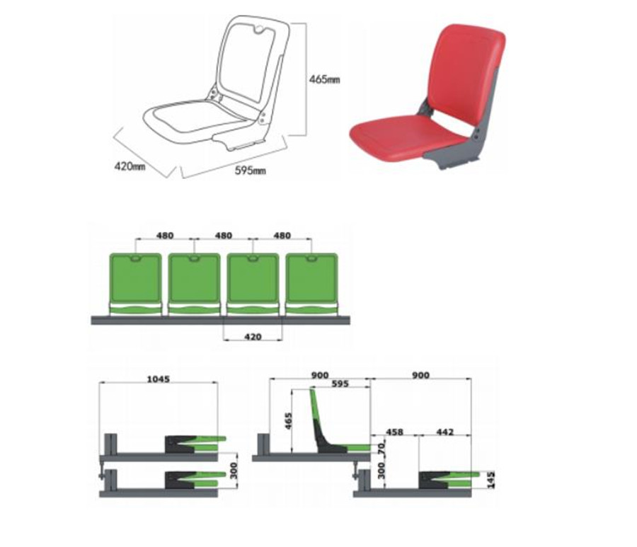 活動看臺座椅采用低靠背中空吹塑座椅,前置式安裝。