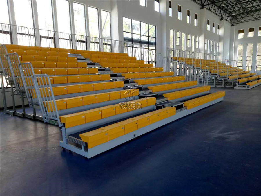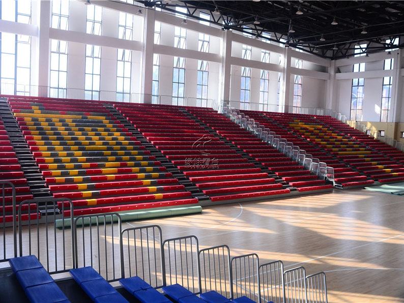 伸縮看臺也稱為活動看臺,活動看臺的稱呼是相對于固定看臺而來,伸縮看臺拉伸成臺階形時,看臺上的座椅供觀眾舒適地欣賞節目,收縮成匣子狀(似抽屜)時則占用很少的空間,讓出場地以安排他用。伸縮看臺可充分利用室內的有限面積,滿足不同功能情況下的多座位要求。伸縮看臺廣泛應用于體育館、會議室、示教室、演播廳、多功能廳等。