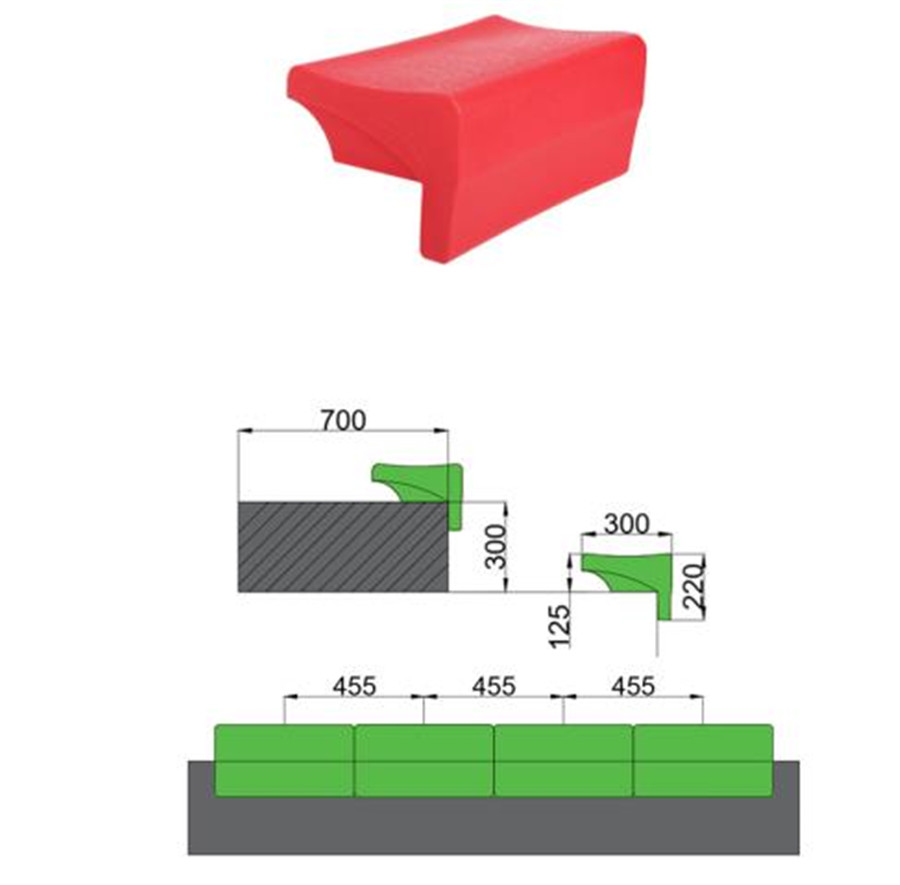 活動看臺座椅采用平靠背中空吹塑座椅,前置式安裝。座椅透過兩塊金屬連接片上的安裝孔將座椅安裝在看臺的踏板上。