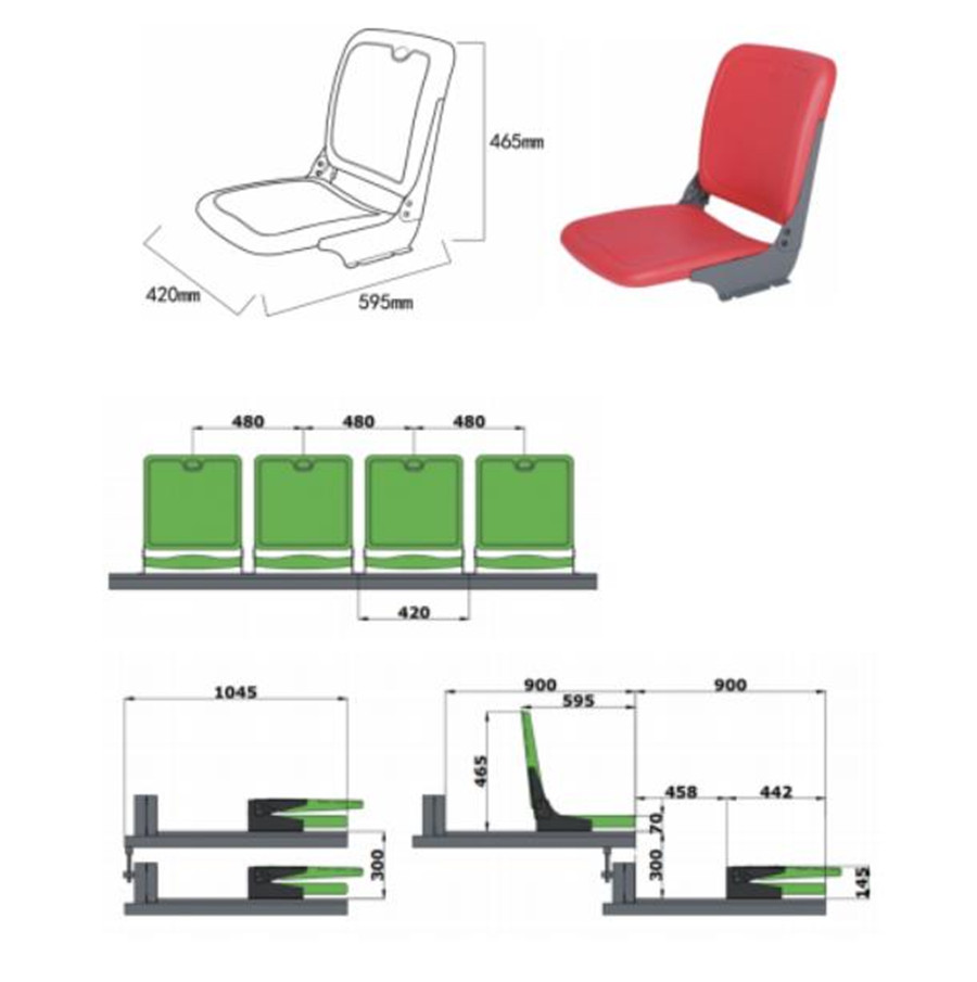 活動看臺座椅采用翻板吹塑座椅,前置式安裝。