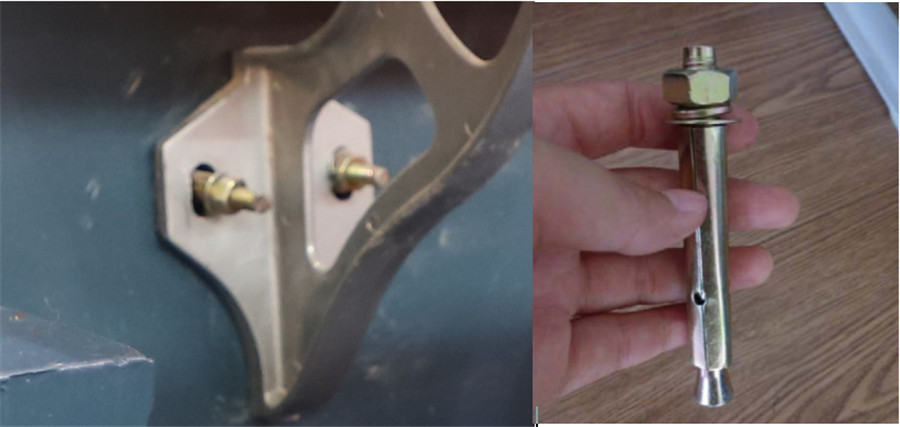 3)安裝座椅的支撐腿。先裝膨脹螺栓,然后再將座椅的支撐腿安裝在膨脹螺栓上,再用螺母固定住支撐腿。連續將單個區段的支撐腿安裝圖紙要求安裝齊。