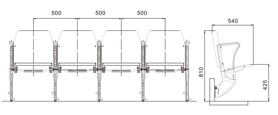 座椅采用側裝方式的座椅,椅面距地面高度約為420mm左右。壓鑄鋁支架采用靜電噴塑處理。支架采用M10×80的擊芯膨脹螺栓與看臺水泥壁面相連,每個膨脹螺栓可抗力100kg以上。