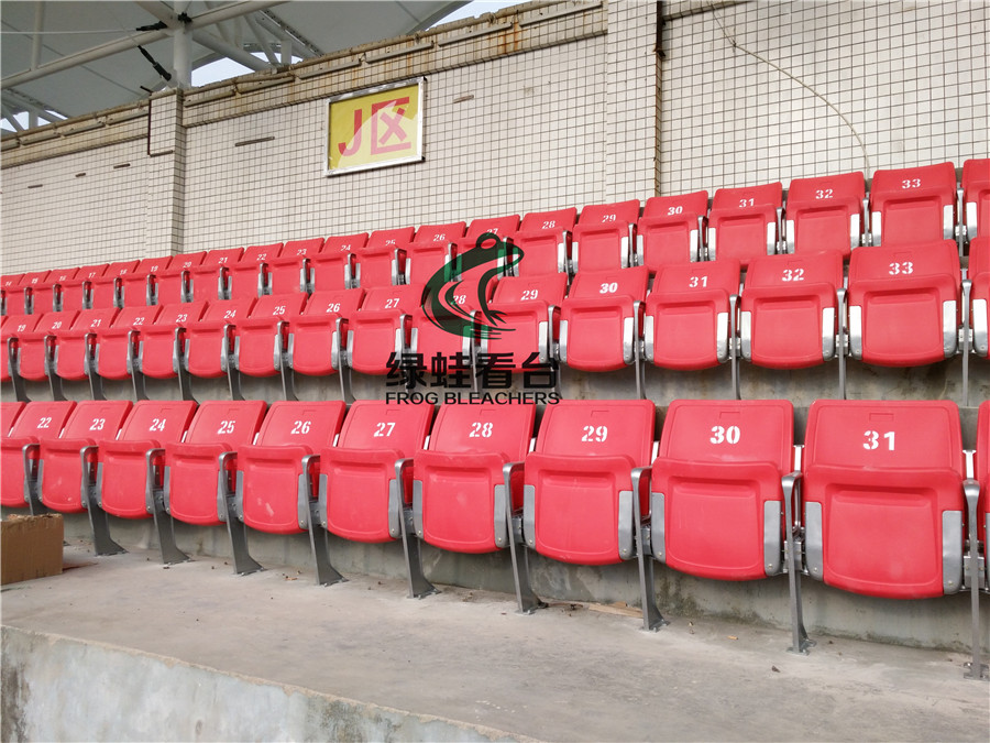 固定看臺座椅(綠蛙牌)可分為平裝、側裝、立裝等不同安裝方式的座椅,也可分為一體椅和翻板椅,根據場地的不同需求而定。